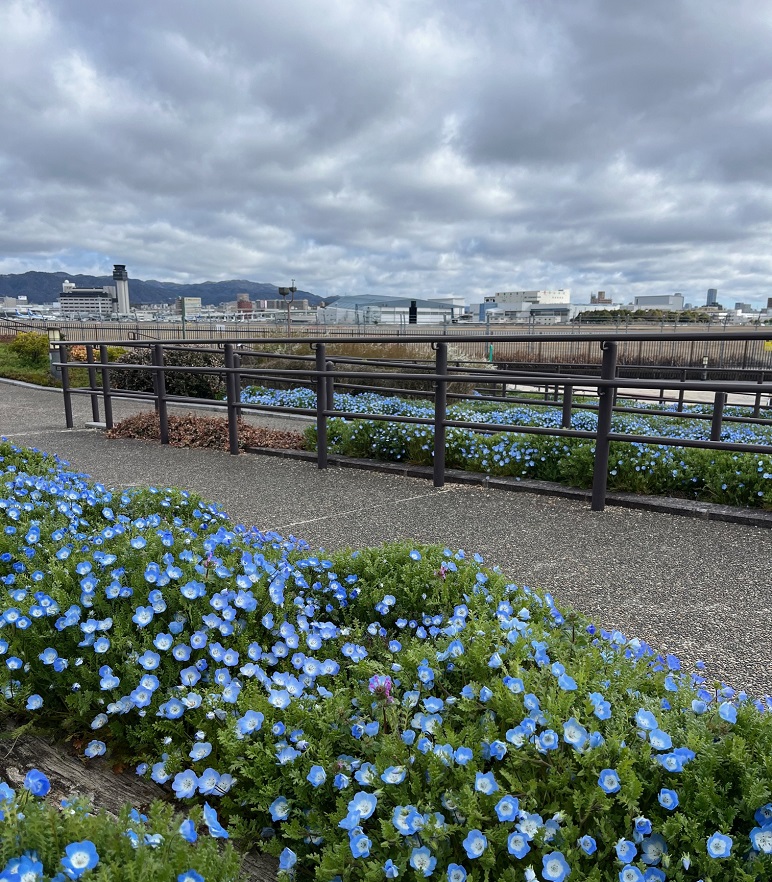 【ネモフィラ】 約4,000株のネモフィラ、可愛く咲いてくれてます♪飛行機とネ… -