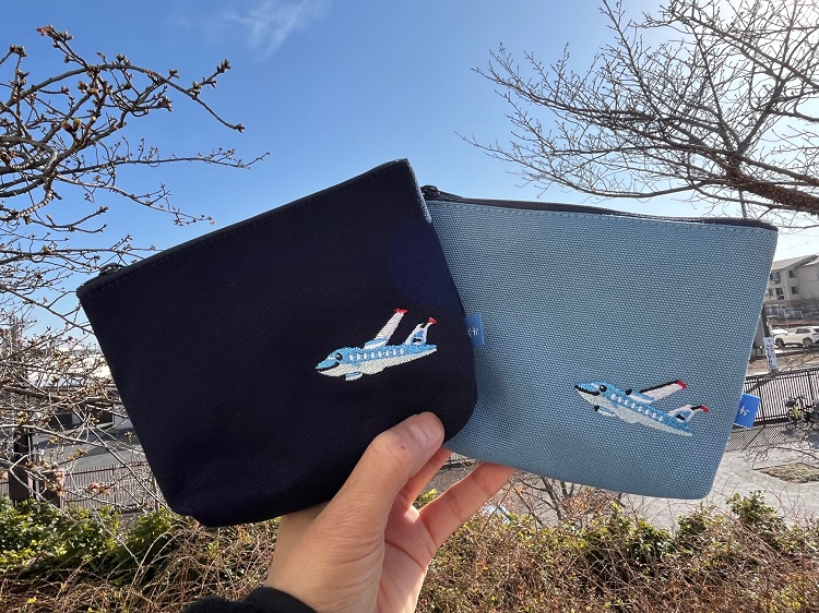みぞか刺繍マチ付きポーチ(青・水色・各2200円)