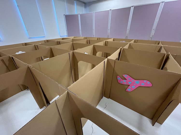 また、段ボール迷路もありますので、こちらもご自由に遊んでくださいね。
